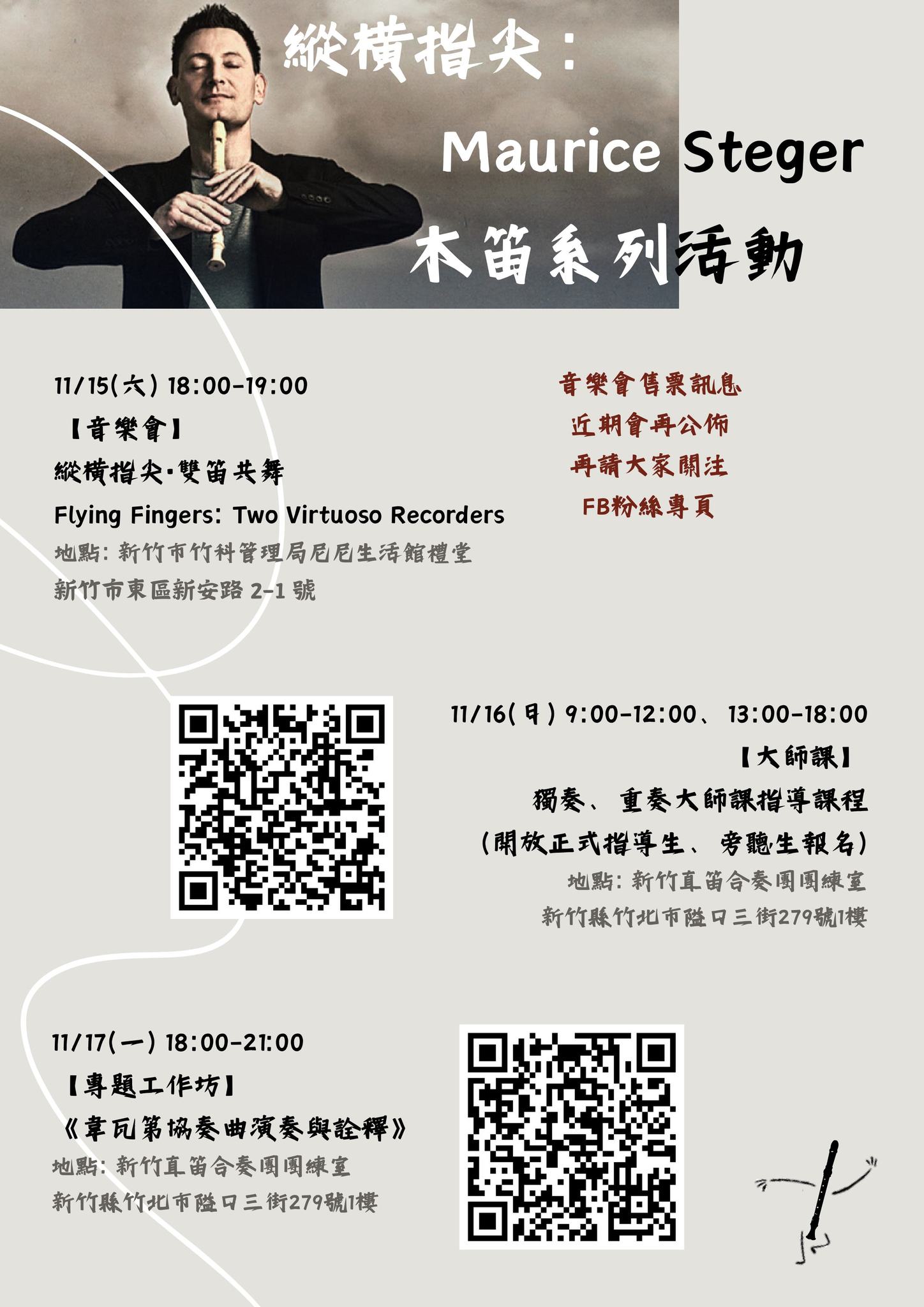 Und nun gehts ab nach Asien: An den taiwanischen Universitäten von Taichung und Hsinchu finden Masterclasses mit Prof. Steger statt, im Programm „flying fingers“ stellt der Blockflötist europäische Barockmusik vor, in Beijing unterrichtet er vor allem Streichinstrumentalist:innen im Repertoire des Barock und der Klassik auf Originalinstrumenten, zudem leitet Steger als Jurypräsident den Taiwanesisch-japanischen Blockflötenwettbewerb und unterrichtet vor Ort Jugendliche aus verschiedenen asiatischen Ländern. Der Höhe- und Schlusspunkt der Reise findet in Shanghai statt, wo Steger zusammen mit dem Cembalisten Sebastian Wienand ein Rezital beim 7. Early Music Festival Shanghai mit Werken von J. S. Bach und seinen italienischen Vorfahren interpretiert.